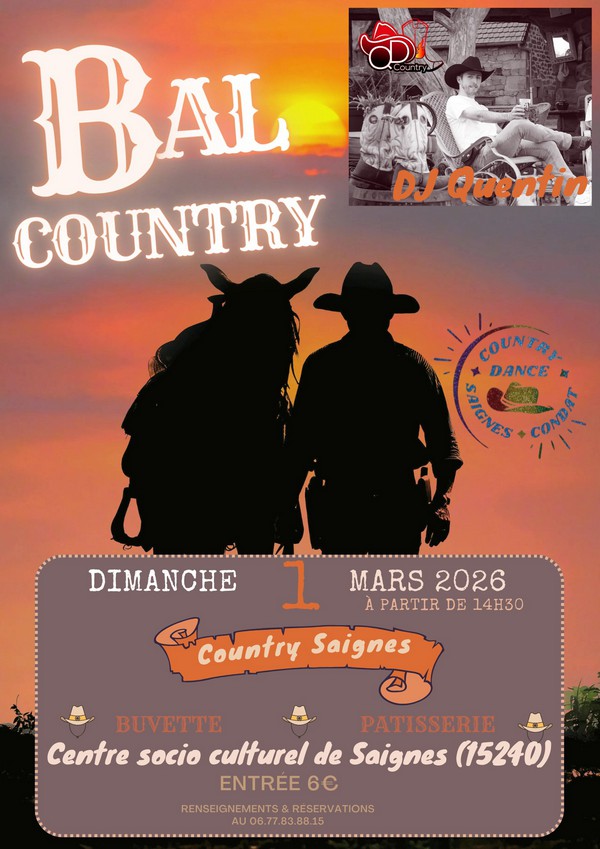 SAIGNES (15) – Bal Country Détails de l'événement Date: 01/03/2026 14:30 – 19:00 Lieu: Centre socio-culturel de Saignes Catégories: Agenda Organisation : COUNTRY SAIGNES Laisser un commentaire Annuler la réponseVous devez être connecté pour publier un commentaire.